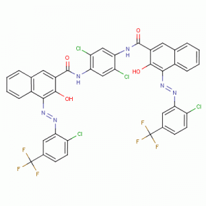 Angol álnév: Pigment piros 242; PR242; Sandorin Scarlet 4RF; 2-Naphthalenecarboxamide, N, N '-(2,5-dichloro-1,4-phenylene) bis- [4-[[2-chloro-5- ( trifluoromethyl) phenyl] azo] -3-hydroxy-3-hydroxy-; (4Z, 4'E) -N, N '-(2,5-dichlorobenzene-1,4-diyl) bis (4-{[2- chloro-5- (trifluoromethyl) phenyl] hydrazono} -3-oxo-3,4-dihydronaphthalene-2-carboxamide); 4- [2-chloro-5- (trifluoromethyl) phenyl] azo-N- [2,5- dichloro-4-[[4- [2-chloro-5- (trifluoromethyl) phenyl] azo-3-hydroxy-naphthalene-2-carbonyl] amino] phenyl] -3-hydroxy-naphthalene-2-carboxamide; N, N '-(2,5-dichloro-1,4-phenylene) bis [4-[[2-chloro-5- (trifluoromethyl) phenyl] azo] -3-hydroxynaphthalene-2-carboxamide]
